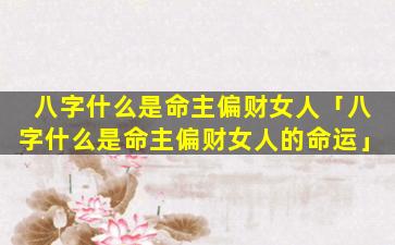 3、八字什么 🌴 是命主偏财 🐅 女人婚姻