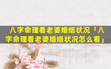 3、八字命💮理看老婆婚姻🦄状况好不好