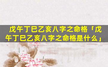 2、戊午丁巳乙亥八字之 🕊 命格是什 🐬 么