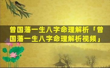 2、曾国藩 🐕 一生八字命理 🐕 解析视频