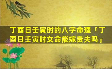 2、丁酉日壬 🌳 寅时 🐺 女命能嫁贵夫吗