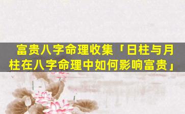 2、日柱与月柱在八字命理中如何影响 🐧 富贵?