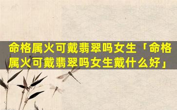 2、命格属 🦟 火可戴翡翠吗女生 🦢 戴什么好