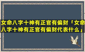 2、女命八字十神有正官有偏财 🐈 代表什么