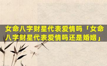 2、女命八 💐 字财星代表爱情 🌲 吗还是婚姻