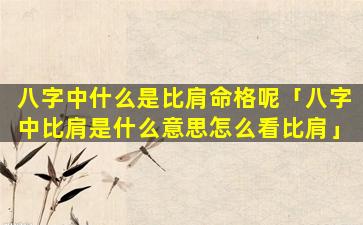 2、八🌻字中比肩是什么意思?怎么?看比肩🐟