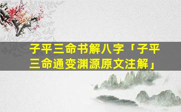 3、子🐦平三命通变渊源注解