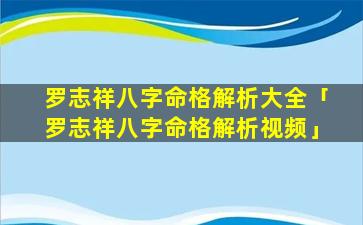 1、罗志 🌷 祥八字命格解析大全