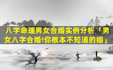 2、男女八字合🌻婚!你🌷根本不知道的姻