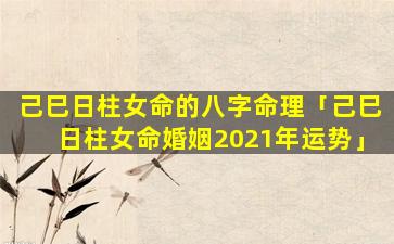 2、己巳日 🦅 柱女命 🐴 婚姻2021年运势