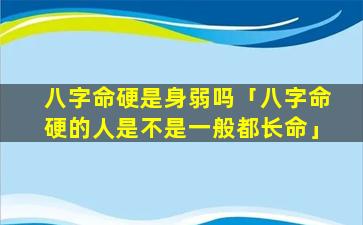 因此,八字命硬并不一定代表身弱命硬。的,人。可。能是身旺的也可能是 🕷 身弱的需要结合八字整体格局来判断