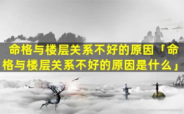 1、命格与楼层关 🦢 系不好的原因
