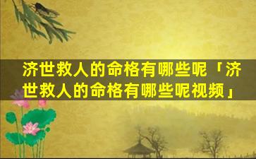 2、济世 🐟 救人的命格有哪些呢视频 🕷