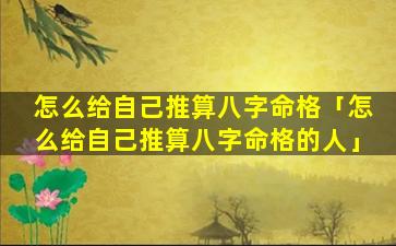 1、怎么 🌿 给自己推算 🐼 八字命格