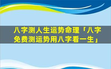 2、八字免费测运势用八字 🐎 看一 🐵 生