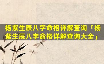 2、杨紫生辰八 🐺 字命格详 🐅 解查询大全