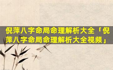 1、倪萍八字命 🐼 局命 🍀 理解析大全