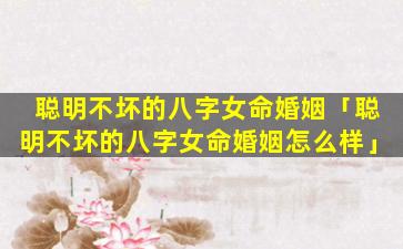 3、聪明不坏的八字女命婚 🐵 姻如何