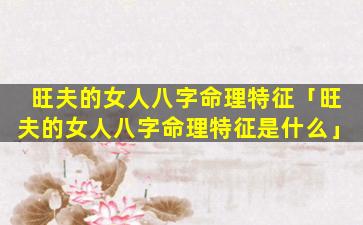3、旺 🌻 夫的 🐡 女人八字命理特征有哪些