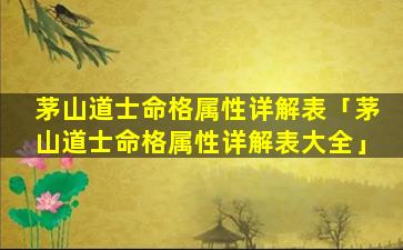 1、茅山道士 🐠 命格属性详 🌿 解表