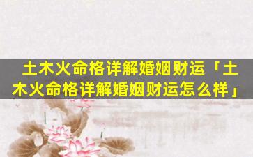 2、土木火 💐 命格详解婚姻财运怎么样