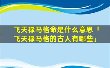 2、飞天禄马格 🐱 的 🍀 古人有哪些