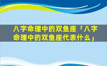 2、八字命理中 🐴 的双鱼座代表什 🐯 么