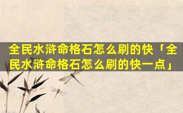 1、全民 🌷 水浒命格石怎么刷 🐴 的快