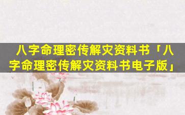 抱歉,我没有“八字命理密传解灾资料书电子版”。如,果您知道该文件在哪里🐳可以提供网站或文件的链接吗🕷?