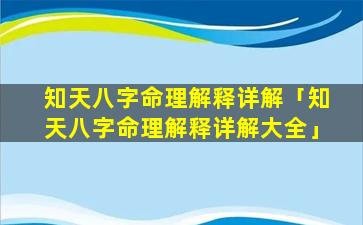 2、知天八 🌵 字命理解 🌲 释详解大全