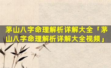 3、茅山八 🐋 字命理解析详解大全图 🐅 片