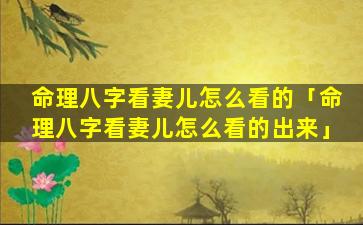 1、命理 🐴 八字看妻儿怎 🐈 么看的