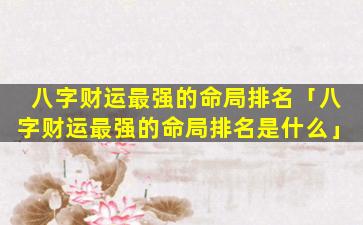财 🐼 运最 🌷 强的八 🐠 字命局排名: