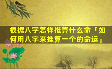 3、根 🦟 据八字怎样推算什么 🌻 命运