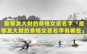 1、能够发大财的命格 💐 女孩名 🐅 字