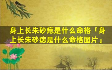 2、身上长朱砂痣是什 🐛 么命格图 🌻 片