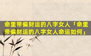 命中带偏财运 🌷 的八字女人命运分析 🐦
