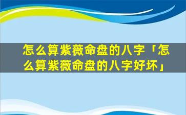 2、怎么算紫薇命盘的 🐒 八字好坏