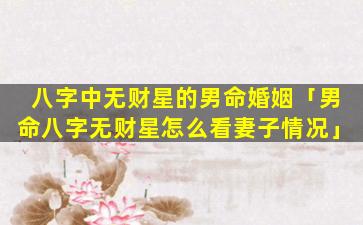 八字中无财星的男命婚 🌻 姻特 🕊 点 🦉