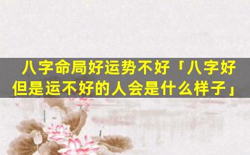 2、八字好但是运不好的 🐋 人会是 🌵 什么样子