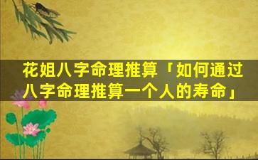 通过八字命理推算 🌸 寿命 🕊 的方法
