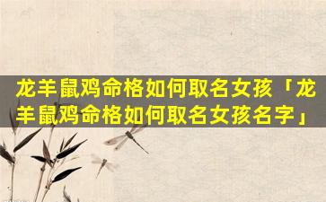 3、龙羊鼠鸡命格如何取 🦉 名女 🌸 孩子