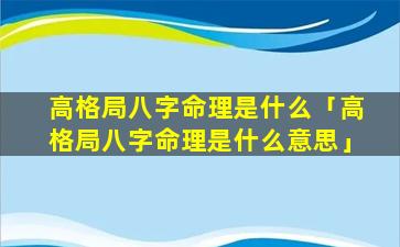 1、高格 🐼 局八字命理是什么