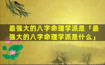 1、最强大的八字 🐒 命理学派是