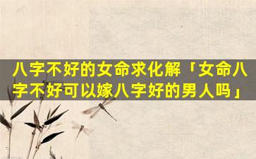 2、女命八字不好可🌵以嫁八字好的男人吗
