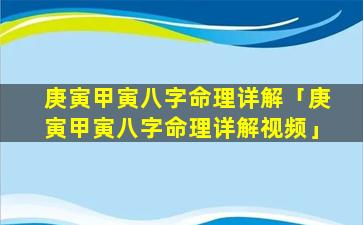 庚寅 🌸 甲 🐼 寅八字命理详解视频 🐦