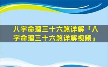 八字命 🦟 理三十六煞详 🦢 解大 🦟 全