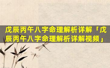 2、戊 🐋 辰丙午八字命理解析详解视频