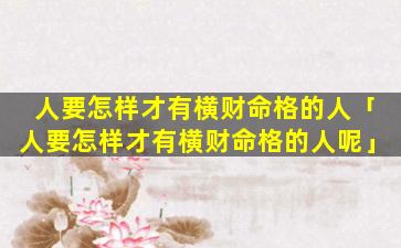 1、人要怎样才有横 🐞 财命 🌿 格的人