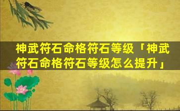 3、神武符石命格符石等级 🐕 怎 ☘ 么看